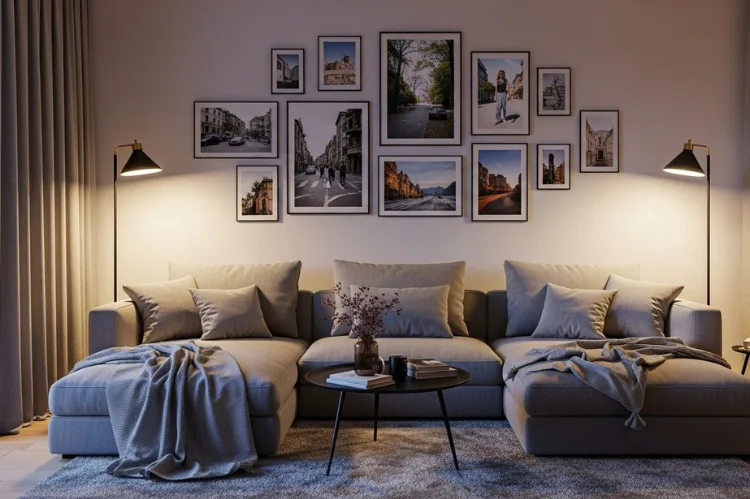 A gallery wall does not exist in a vacuum—it needs to harmonize with the furniture and decor. A frequent mistake is hanging photos too high. The center of the gallery should be at eye level, which is typically 57-60 inches from the floor.